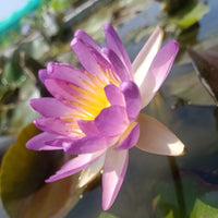Unveil the enchanting beauty of the Mulberry Mystique, a captivating water lily that will transform your pond or water feature into a breathtaking oasis. This stunning cultivar boasts a unique color blend, a vibrant symphony of deep lavender hues gently transitioning into a soft, creamy yellow heart. The petals, delicately layered, exude an ethereal elegance, catching the sunlight and casting mesmerizing reflections on the water's surface.