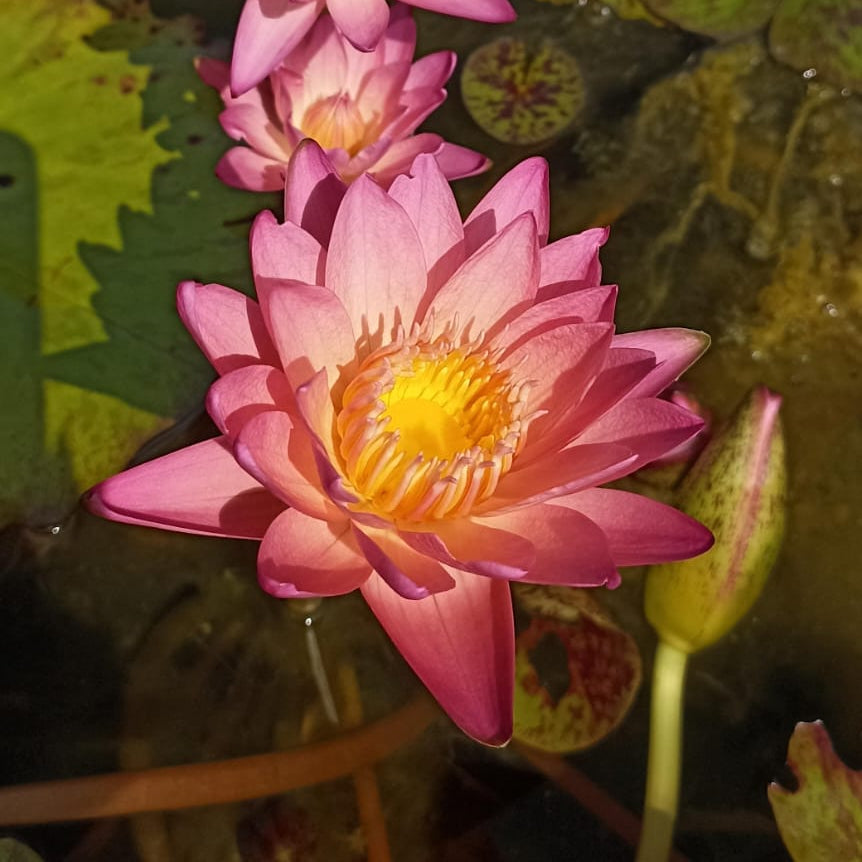 There are two kinds of water lilies – Hardy water lilies and Tropical water lilies. Tropical water lilies grow from tubers, bear star-shaped flowers, and are prolific bloomers. Hardy water lilies grow out of rhizomes and bear cup-shaped flowers. Though certain hardys do not bloom as profusely as tropicals, the flower structure of hardys makes them true showstoppers. Both hardys and tropicals are fragrant, come in a full range of colors, and are a joy to own and grow.