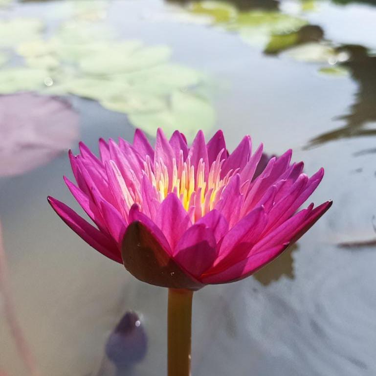 Behold the Athittaya, a breathtaking water lily showcasing vibrant fuchsia petals that gracefully transition to a captivating yellow center. Athittaya stands out with its strikingly beautiful flowers, each boasting an impressive average of 25 to 35 petals. This stunning fragrant aquatic bloom isn't just visually appealing; it's a testament to nature's artistry, perfect for enhancing any water garden.