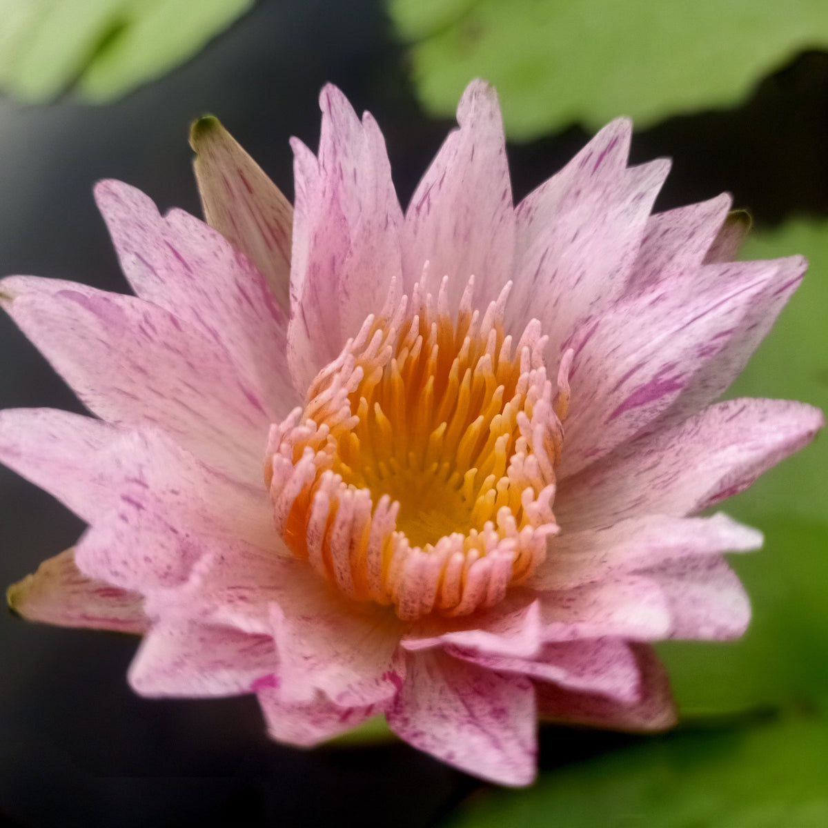 Behold the captivating beauty of the Nymphaea, Diamond Dust, a stunning aquatic marvel. Crazy Suwanna hybridized this aromatic tropical water lily. This variety, featuring light pink specs with a vibrant yellow center, will transform your space into a tranquil oasis.
