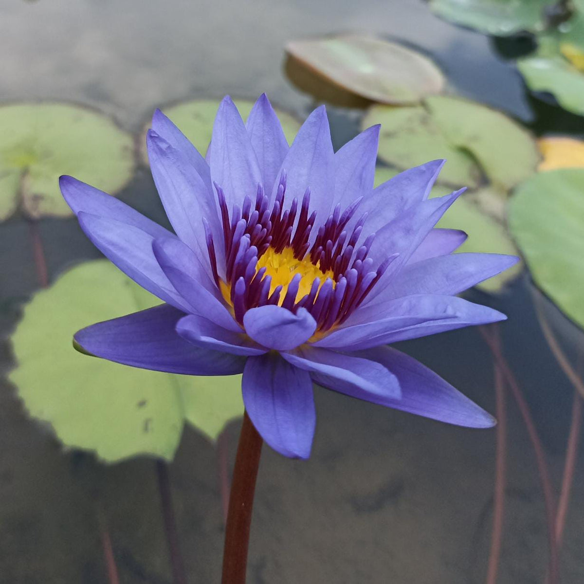 Behold the captivating beauty of Director GT Moore a purple tropical water lily was hybridised by Pring in the year 1941, a mesmerizing aquatic jewel that will transform your water garden into a tranquil oasis. This stunning specimen features vibrant purple petals surrounding a striking yellow center, creating an unforgettable visual spectacle.
