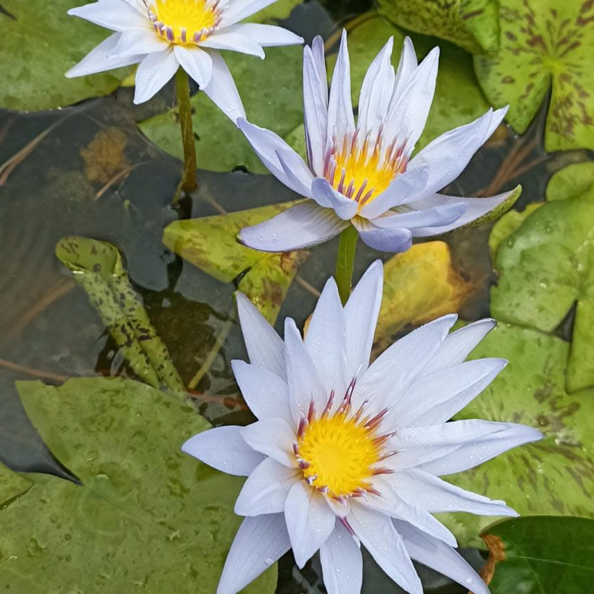 There are two kinds of water lilies – Hardy water lilies and Tropical water lilies. Tropical water lilies grow from tubers, bear star-shaped flowers, and are prolific bloomers. Hardy water lilies grow out of rhizomes and bear cup-shaped flowers. Though certain hardys do not bloom as profusely as tropicals, the flower structure of hardys makes them true showstoppers. Both hardys and tropicals are fragrant, come in a full range of colors, and are a joy to own and grow.
