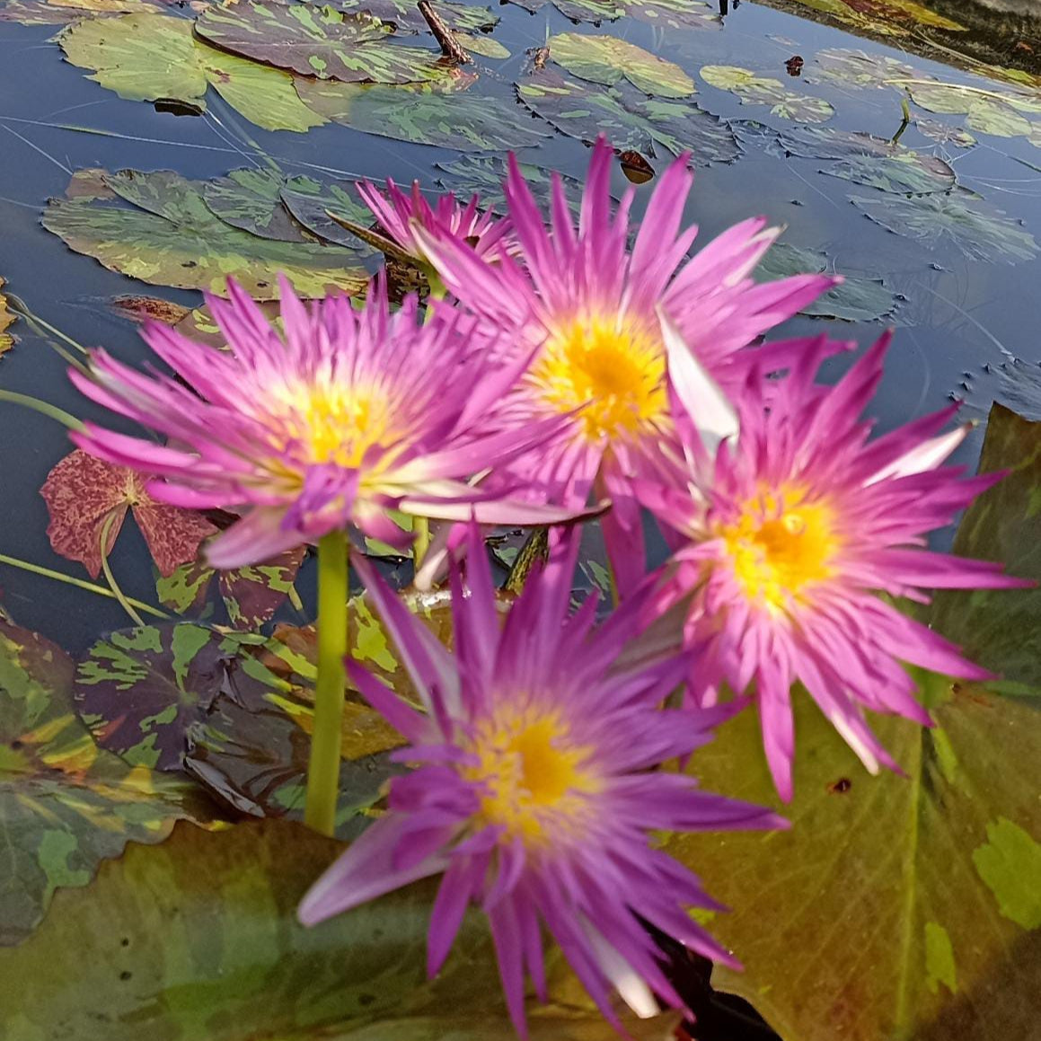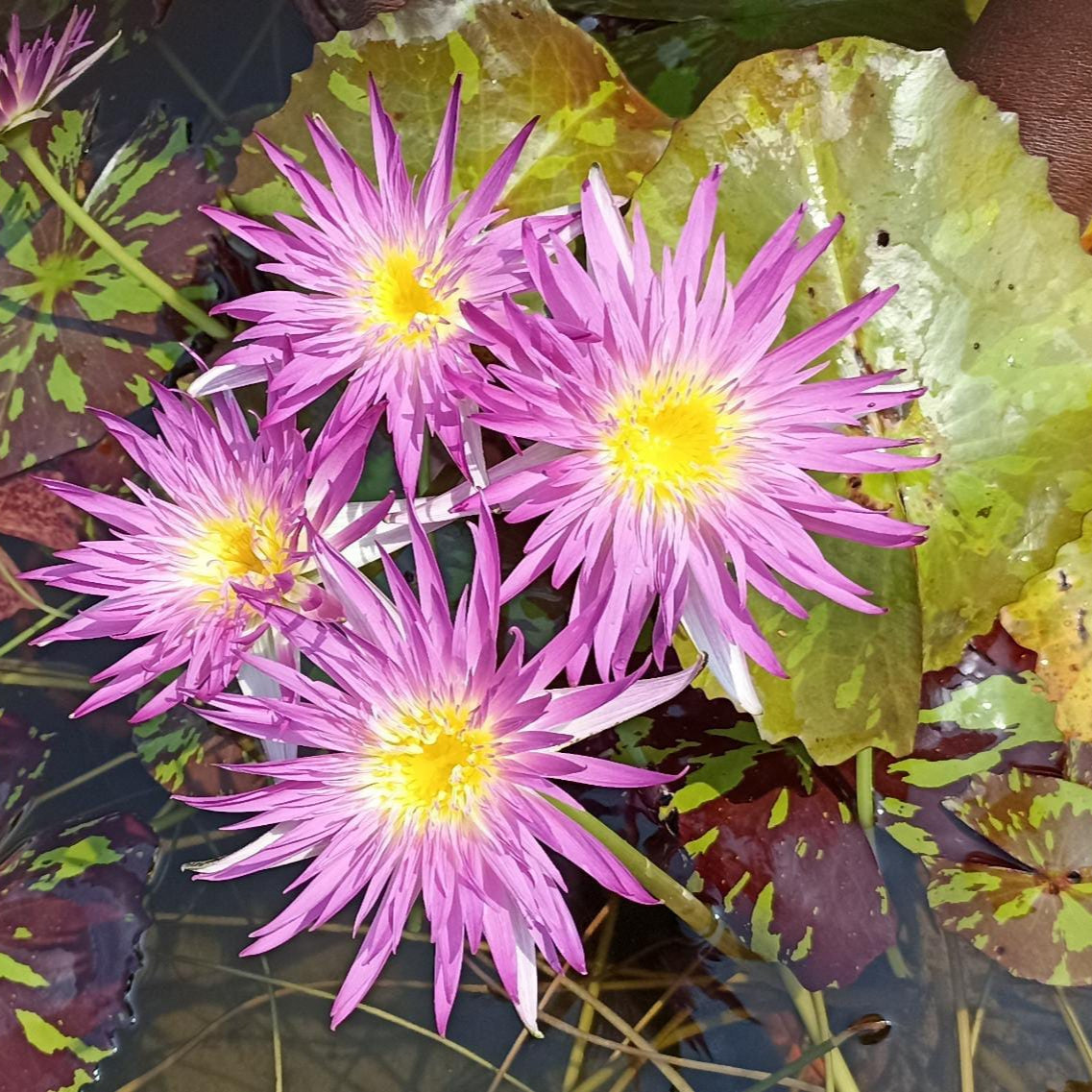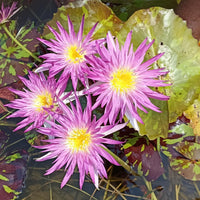Introducing the captivating Pink Flamingo Water Lily, a stunning addition to any water garden. This enchanting variety boasts vibrant, fuchsia-pink petals radiating from a luminous yellow-gold center, creating a spectacle of color that will transform your pond or container into a breathtaking oasis. Its numerous, slender petals give it a unique, almost starburst-like appearance, unlike many more traditionally rounded water lilies. This Beauty is hybridised by Craig Presnell in the year 2005.