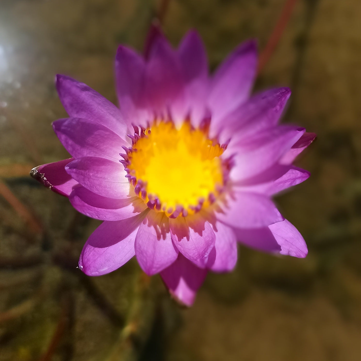 Behold the captivating beauty of the Nymphaea, a water lily renowned for its enchanting purple blooms and vibrant yellow center. This stunning aquatic plant, a member of the Nymphaeaceae family, boasts a rich history, gracing ponds and waterways across the globe for centuries. Its elegant flowers have inspired artists and poets alike, symbolizing purity, rebirth, and spiritual enlightenment in various cultures. Hybridised by bryne in the year 1998.